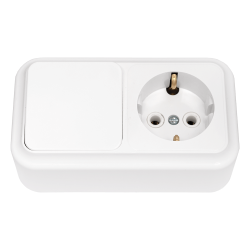 ПРАЛЕСКА Блок выключатель 1-кл.+розетка с/з горизонтальный белый БелТИЗ