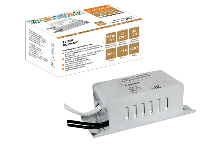 Применение:Обеспечение работы низковольтных галогенных ламп и ламп накаливания. Материалы:Корпус - металл.Преимущества:Компактные габаритные размеры.Металлический корпус обеспечивает равномерное отведение тепла, что исключает перегрев трансформатора.На корпусе предусмотрены отверстия для крепления трансформатора к поверхности. Назначение:Для преобразования напряжения 230В в напряжение 12В. 0: