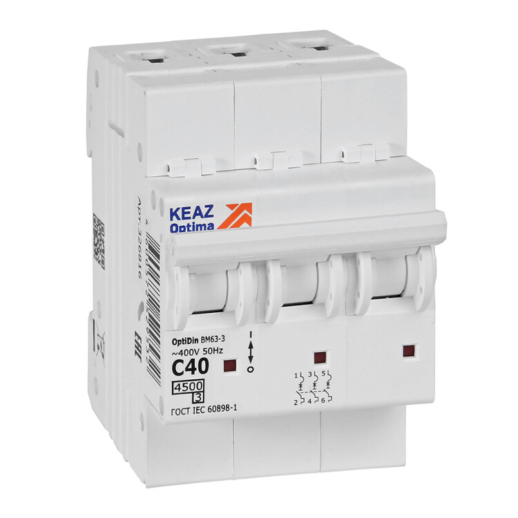 Выключатель автоматический модульный OptiDin BM63-3C40-4,5-УХЛ3