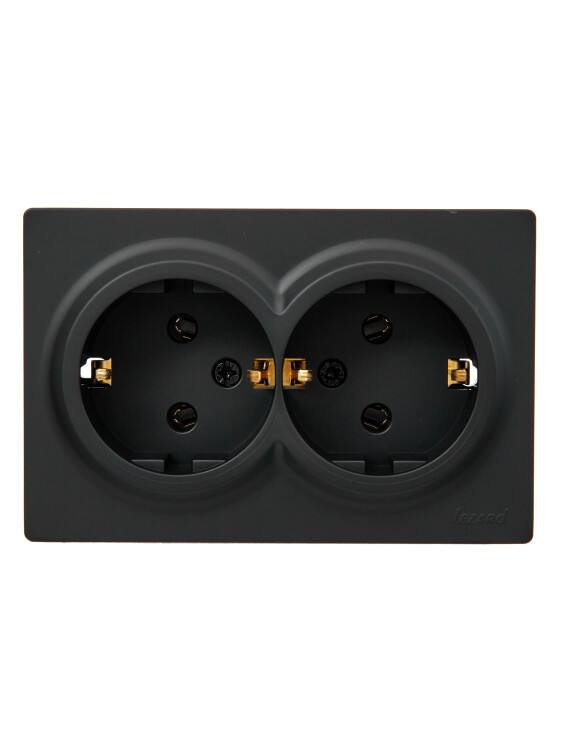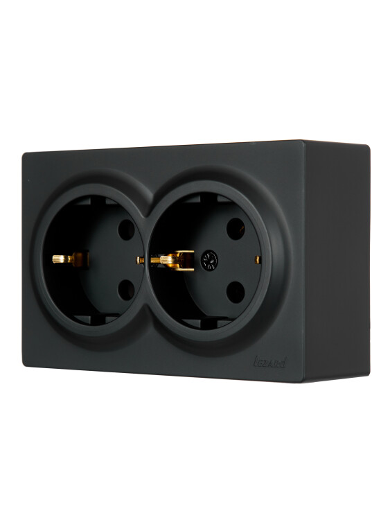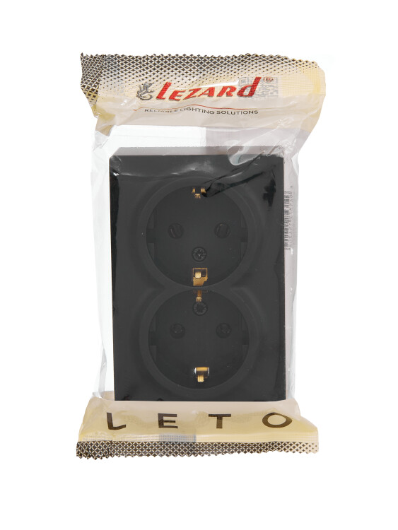 LETO Розетка двойная с/з закрытый корпус ПБТ чёрный бархат (10шт/120шт)