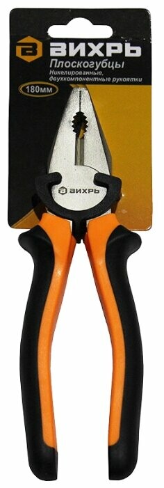Пассатижи (плоскогубцы), 180мм, никелированные, двухкомпонентные рукоятки 73/6/3/7, Вихрь