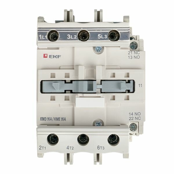 Контакторы КМЭ EKF PROxima состоят из корпуса, закрепленных в нем неподвижных контактов, подвижных контактов, которые закреплены в подвижной части магнитной системы. Неподвижная часть магнитной системы закреплена жестко в корпусе КМЭ. Пружина препятствует смыканию контактов. При подаче напряжения на катушку управления в магнитной системе контактора возникает магнитное поле, которое, преодолевая сопротивление пружины, смыкает магнитную систему и замыкает контакты. При отключении напряжения с катушки управления пружина размыкает контакты. Возможна коммутация алюминиевым и медным проводом. Основное назначение контактора КМЭ – частые дистанционные включения и выключения силовых электрических цепей в нормальном режиме работы.