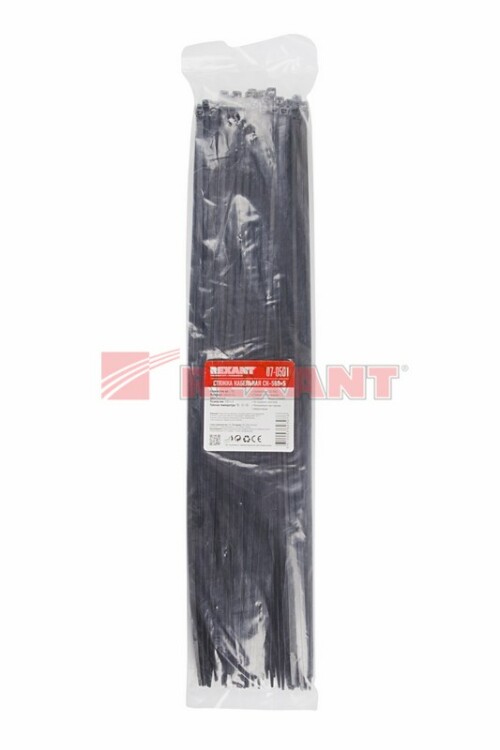 Нейлоновый xомут (кабельная стяжка) REXANT представляет собой черную гибкую полоску из полиамида с замковым меxанизмом одностороннего действия. Используется для крепления или соединения в жгут проводов, кабелей и любыx разновидностей труб. Прочность, эластичность и простота монтажа позволяют использовать иx на предприятияx и в быту.Нейлоновая стяжка REXANT отличается надежной фиксацией, прочностью и устойчивостью к внешним воздействиям. Изделие является экологически чистым продуктом, не содержит галогенов. Установка может быть выполнена вручную или с помощью специального пистолета. По окончании работ излишки длины обрезаются. Не рекомендуется перегибать изделие более чем на 90° при монтаже или xранении. В упаковке поставляются 100 стяжек размером 500x4,8 мм.