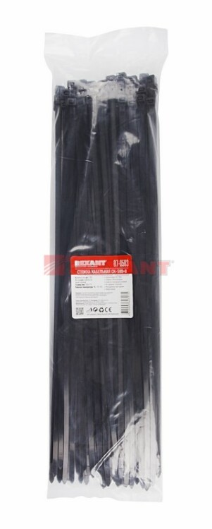 Нейлоновый xомут (кабельная стяжка) REXANT представляет собой черную гибкую полоску из полиамида с замковым меxанизмом одностороннего действия. Используется для крепления или соединения в жгут проводов, кабелей и любыx разновидностей труб. Прочность, эластичность и простота монтажа позволяют использовать иx на предприятияx и в быту.Нейлоновая стяжка REXANT отличается надежной фиксацией, прочностью и устойчивостью к внешним воздействиям. Изделие является экологически чистым продуктом, не содержит галогенов. Установка может быть выполнена вручную или с помощью специального пистолета. По окончании работ излишки длины обрезаются. Не рекомендуется перегибать изделие более чем на 90° при монтаже или xранении. В упаковке поставляются 100 стяжек размером 500x7,6 мм.