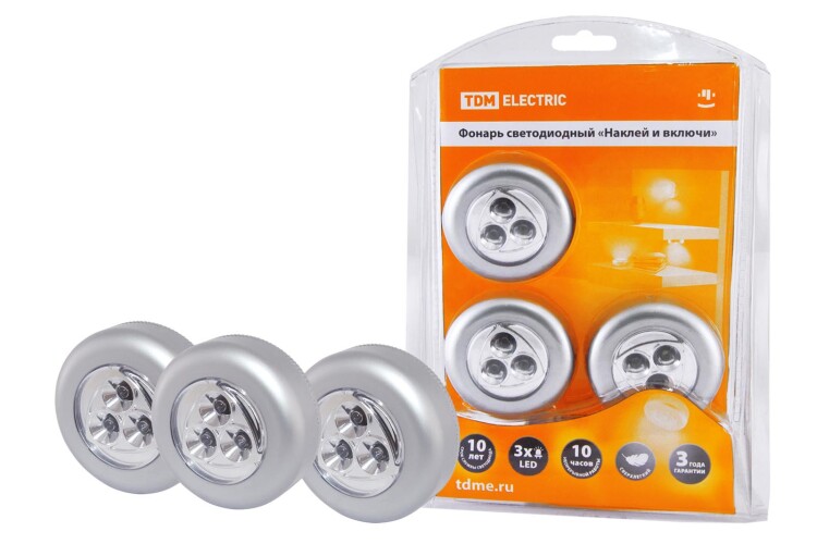 Применение:В жилых помещениях: для декоративной подсветки помещения или предметов интерьера, для дополнительной местной подсветки. Может применяться в качествеВ автомобиле, на даче, в походе Материалы:ПластикПреимущества:Светодиоды в качестве источника светаЦветовая температура - 5000 ККомпактный размер В комплект входит сразу 3 фонаряПриклеивается на любую ровную поверхностьУниверсальный дизайн, подходит для любого интерьераВключается одним нажатием на сам фонарь 0: Применение:Для освещения дороги при поездках на велосипеде, а также информирования других участников движения в темное время сутокДля безопасных занятий велоспортом в условиях недостаточной видимости
