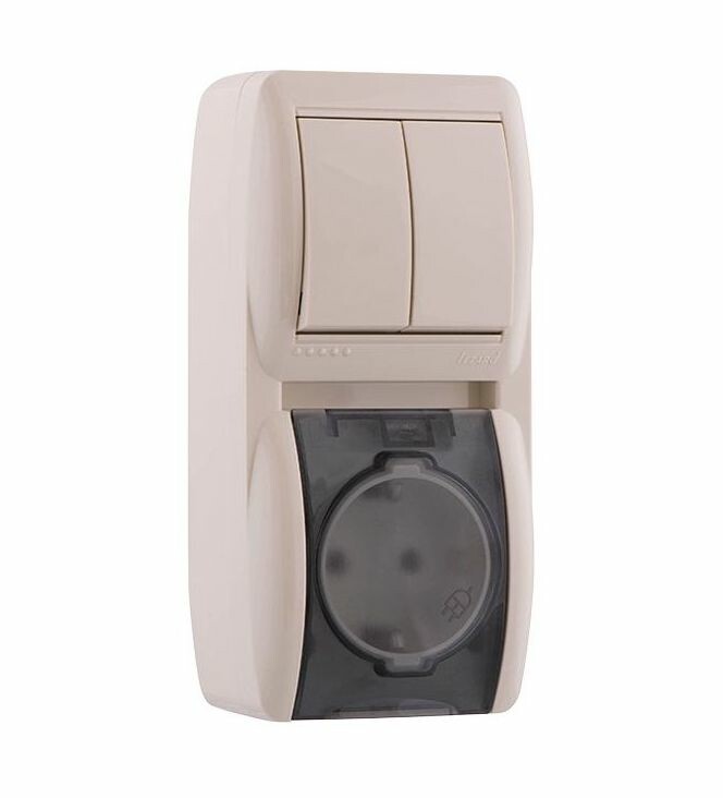 NATA Выключатель 2-кл. и розетка 1-ая вертикальная с/з с крышкой крем LEZARD (10шт/120шт)
