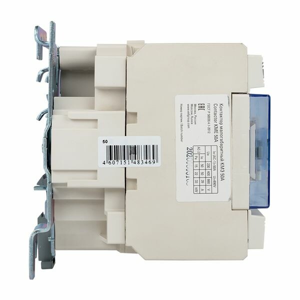 Контакторы КМЭ EKF PROxima состоят из корпуса, закрепленных в нем неподвижных контактов, подвижных контактов, которые закреплены в подвижной части магнитной системы. Неподвижная часть магнитной системы закреплена жестко в корпусе КМЭ. Пружина препятствует смыканию контактов. При подаче напряжения на катушку управления в магнитной системе контактора возникает магнитное поле, которое, преодолевая сопротивление пружины, смыкает магнитную систему и замыкает контакты. При отключении напряжения с катушки управления пружина размыкает контакты. Возможна коммутация алюминиевым и медным проводом.