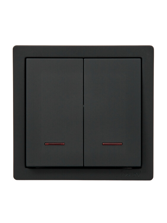LETO Выключатель двойной с подсветкой чёрный бархат (10шт/120шт)