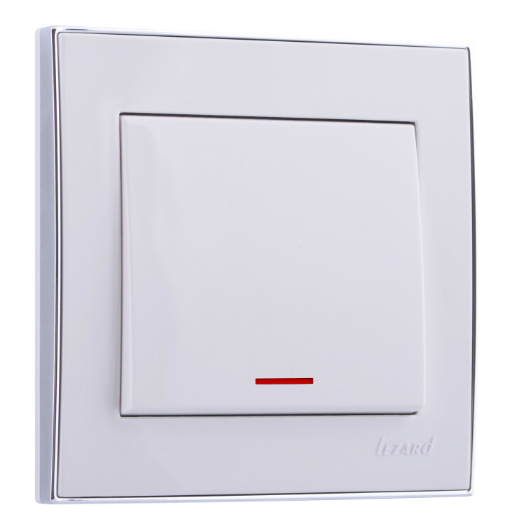 RAIN Выключатель 1-кл. с подсветкой белый с бок. вст. хром LEZARD (10шт/120шт)