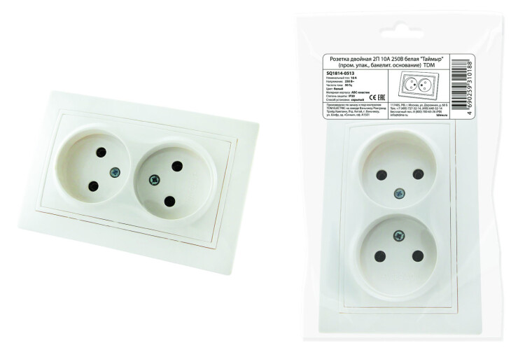 ТАЙМЫР Розетка 2-ая б/з 10А бакелит. основание белый TDM (10/100шт)