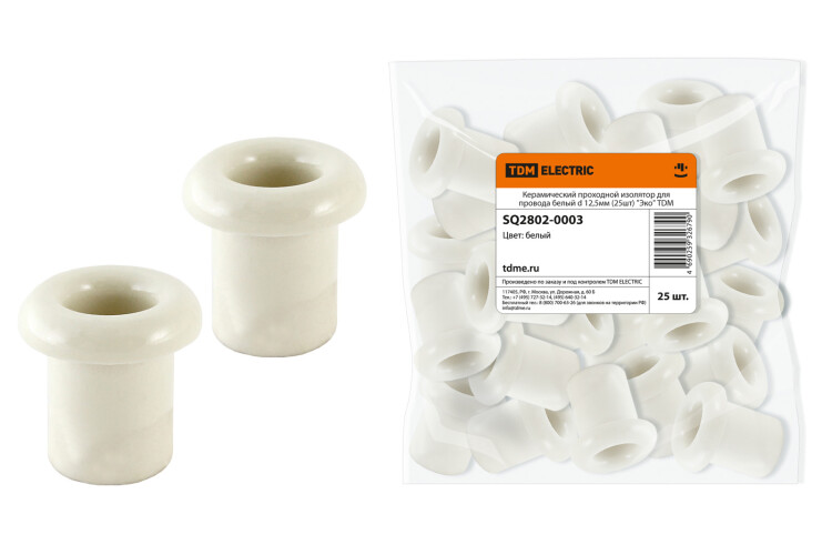 ЭКО Изолятор проходной для ретро-провода d=12,5мм керамика белый TDM (25/500шт)
