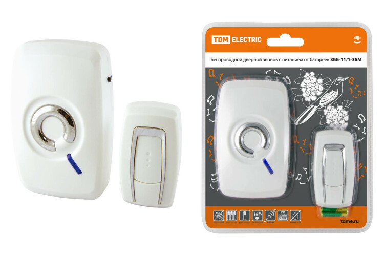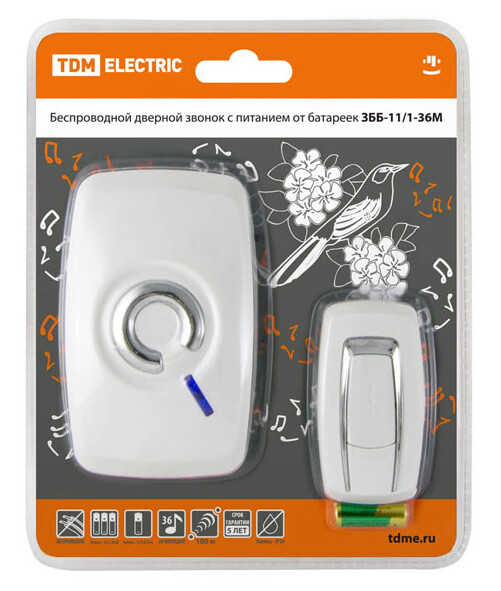Звонок беспроводной на батарейках 36 мелодий ЗББ-11/1-36М TDM (1/60шт)