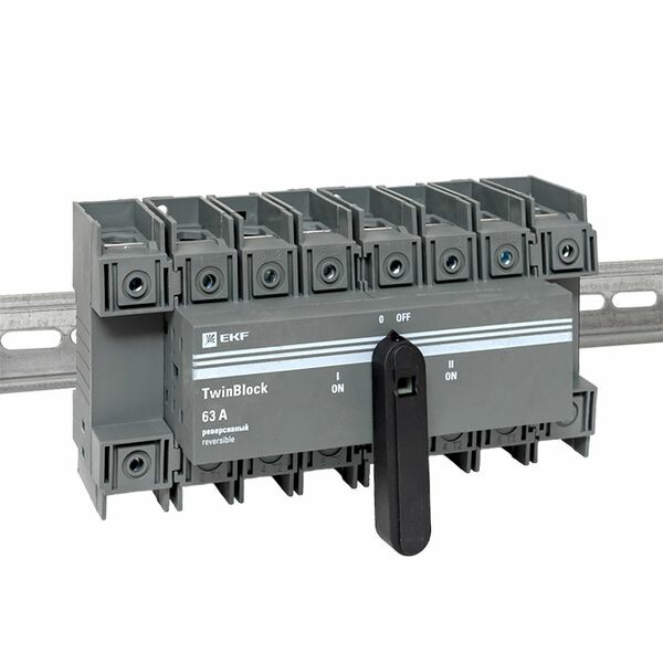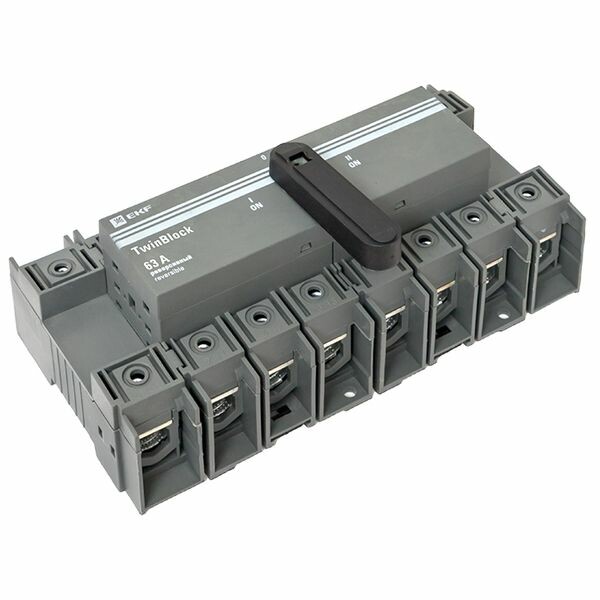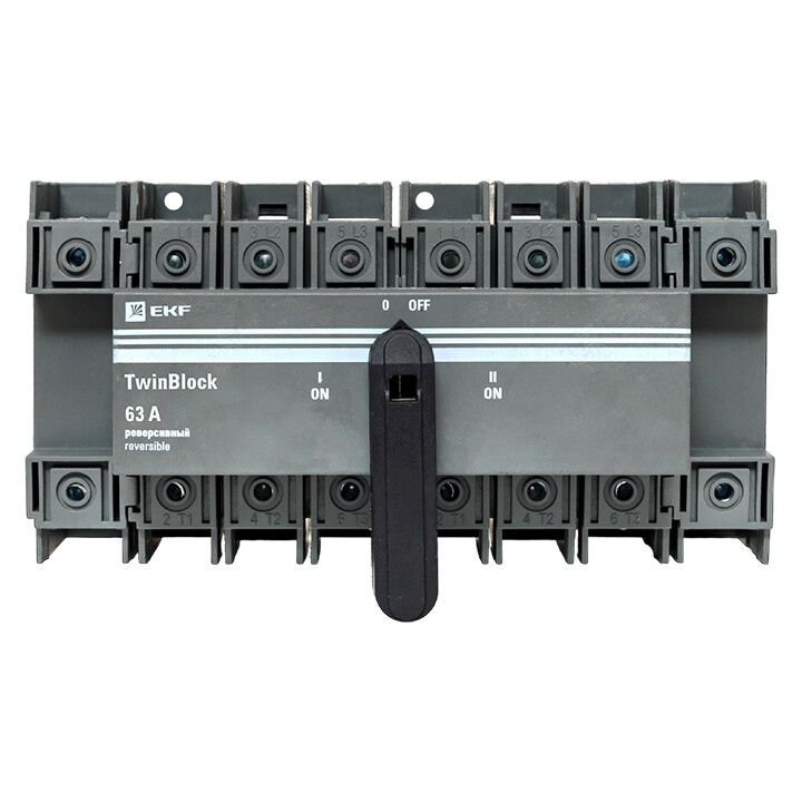 Рубильники серии TwinBlock предназначены для пропускания номинальных токов, включения и отключения электрических цепей номинальным напряжением до 690 В переменного тока частотой 50 и 60 Гц в устройствах распределения электрической энергии. Выключатели-разъединители серии TwinBlock (модели 40-800 А) имеют возможность подключения дополнительного четвертого полюса. Реверсивные рубильники серии TwinBlock предназначены для переключения нагрузки на резервную линию с разрывом питания (индикация положений на рубильнике I-0-II). Электрические характеристики реверсивных рубильников серии TwinBlock позволяют выполнять переключение под нагрузкой между двумя источниками питания, даже при токах с высокой индуктивной составляющей и пусковых токах двигателей.