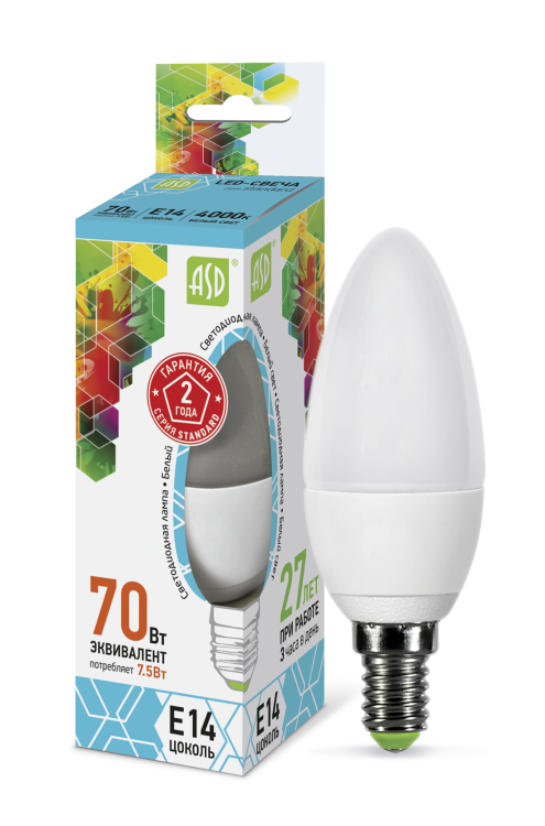 Матовая колба в форме свечи. Лампа излучает мягкий комфортный свет, широко применяется в люстрах и светильниках с открытым абажуром.