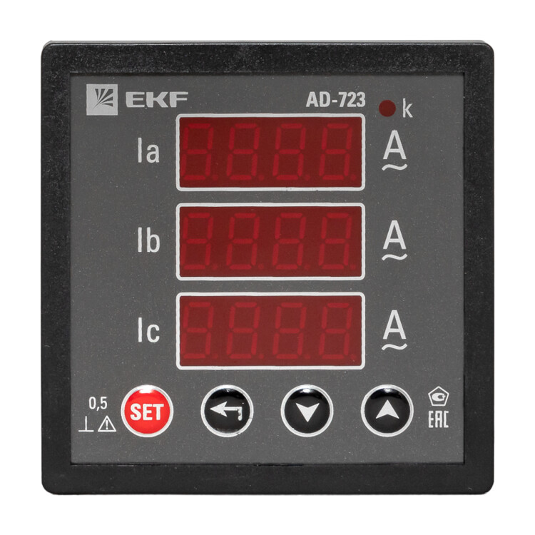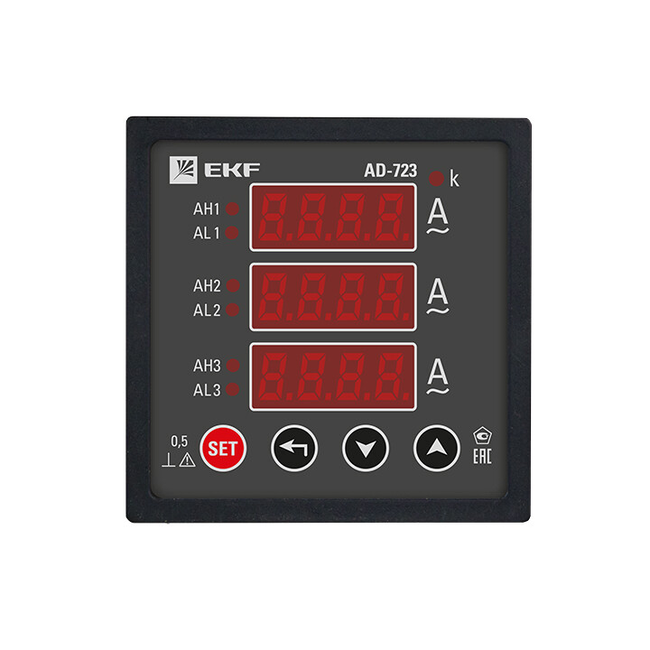 Цифровые электроизмерительные амперметры торговой марки EKF предназначены для измерения силы тока в однофазных и трехфазных электрических цепях переменного тока. Приборы применяются для работы в закрытых помещениях, в электрощитовом оборудовании, в электроустановках промышленных предприятий, жилых и общественных зданий и сооружений. Амперметры могут быть как прямого, так и трансформаторного подключения. Диапазон измерений приборов трансформаторного подключения зависит только от номинала подключаемого измерительного трансформатора тока. Микропроцессорное устройство приборов позволяет получить класс точности 0,5, многократно превосходящий класс точности аналоговых амперметров.