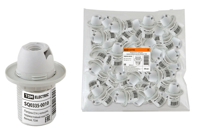 Патрон Е14 с кольцом, термостойкий пластик, белый, TDM