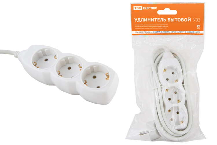 Удлинитель 3 гнезда с/з 3м 16А 250В (ПВС 3х1мм2) белый TDM (20шт)