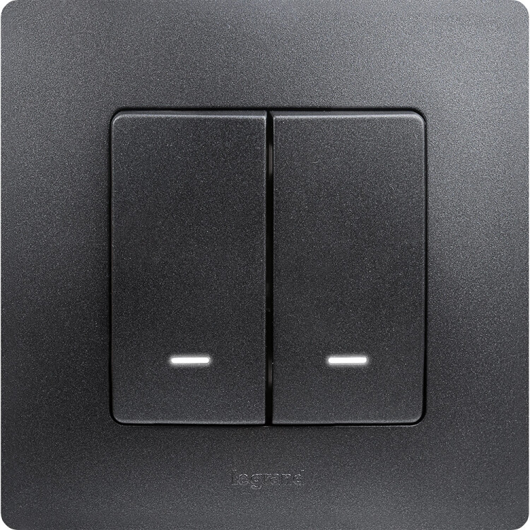 Выключатель двухклавишный с подсветкой/индикацией - Legrand Etika - 10А 250В безвинтовые зажимы - антрацит