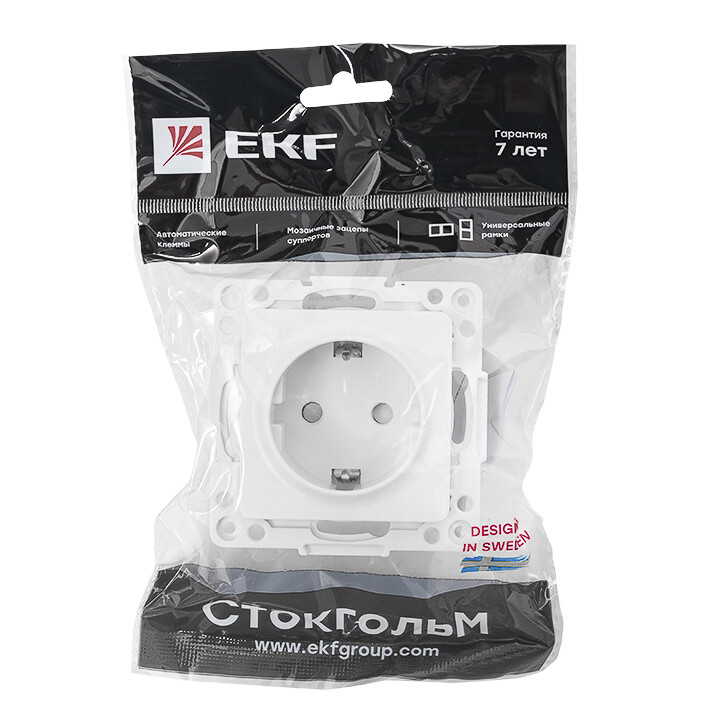 Розетка одноместная EKF серии Стокгольм с заземлением и со шторками станет отличным решением для стильного помещения при подключении устройств. Шторки открываются при одновременном давлении в оба отверстия и препятствуют проникновению посторонних предметов, обеспечивая дополнительную безопасность. Выполнена из поликарбоната, устойчивого к ультрафиолетовому излучению. Автоматические самозажимные клеммы упрощают и ускоряют монтаж изделия. Изделие необходимо дополнить рамкой.