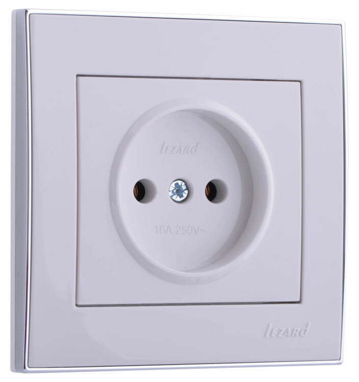 RAIN Розетка 1-ая б/з керамика белый с бок. вст. хром LEZARD (10шт/120шт)
