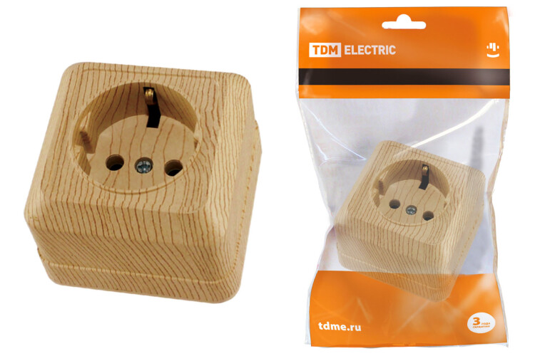 ЛАДОГА Розетка 1-ая с/з 16А керамика сосна TDM (10/200шт)