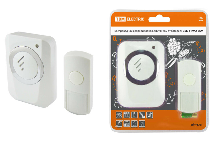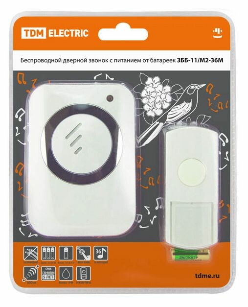 Применение:Используются в качестве дверных звонков или устройств внутреннего вызова. Преимущества:Бюджетное предложение на электротехническом рынке.Дальность работы беспроводных звонков 100-300 метров (на открытом пространстве).В ряде моделей имеется возможность разместить на кнопке номер квартиры и/или фамилию хозяина.В ряде моделей пользователь имеет возможность изменения кода звонка при порче/утере старой кнопки или для подключения дополнительной кнопки.В ассортименте имеются отдельно кнопки для проводных и беспроводных звонков, что позволит произвести замену при порче старой кнопки.Ряд моделей имеет кнопки со степенью защиты IP44, которые можно устанавливать на улице.Имеются исполнения с 2-мя кнопками (для разных выходов из дома) и с 2-мя звонками (для разных этажей или зданий: дом, гараж).Звонки упакованы в яркую блистерную упаковку, оформленную в корпоративных цветах TDM ELECTRIC, на каждом блистере есть информационные пиктограммы с характеристиками звонков.0: Применение:Используются в качестве дверных звонков или устройств внутреннего вызова. Преимущества:Бюджетное предложение на электротехническом рынке.Дальность работы беспроводных звонков 100-300 метров (на открытом пространстве).В ряде моделей имеется возможность разместить на кнопке номер квартиры и/или фамилию хозяина.В ряде моделей пользователь имеет возможность изменения кода звонка при порче/утере старой кнопки или для подключения дополнительной кнопки.В ассортименте имеются отдельно кнопки для проводных и беспроводных звонков, что позволит произвести замену при порче старой кнопки.Ряд моделей имеет кнопки со степенью защиты IP44, которые можно устанавливать на улице.Имеются исполнения с 2-мя кнопками (для разных выходов из дома) и с 2-мя звонками (для разных этажей или зданий: дом, гараж).Звонки упакованы в яркую блистерную упаковку, оформленную в корпоративных цветах TDM ELECTRIC, на каждом блистере есть информационные пиктограммы с характеристиками звонков.