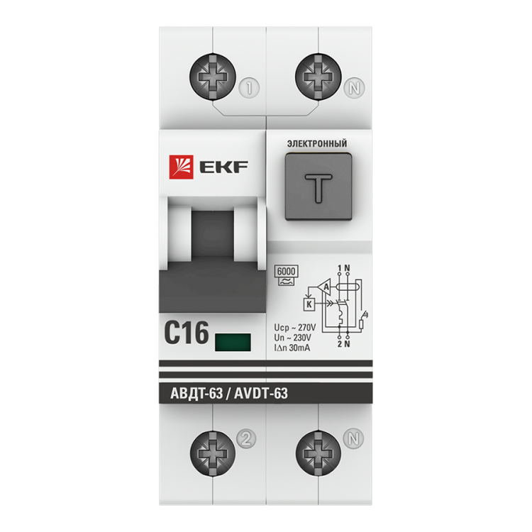 Автоматический выключатель дифференциального тока АВДТ-63 EKF PROxima представляет аппарат, сочетающий функции автоматического выключателя с электромеханическим или электронным УЗО. При обнаружении автоматическим выключателем в защищаемом участке сети тока утечки (повреждения) на землю или сверхтока (тока перегрузки иликороткого замыкания) происходит срабатывание устройства, приводящее к отключению защищаемой сети. Возможна коммутация алюминиевым и медным проводником.Автоматический выключатель дифференциального тока малогабаритный АВДТ-63М EKF PROxima представляет аппарат, сочетающий функции автоматического выключателя с электронным УЗО типа АС в компактном корпусе шириной один модуль. При обнаружении автоматическим выключателем на защищаемом участке сети тока утечки (повреждения) на землю или сверхтока (тока перегрузки или короткого замыкания) происходит срабатывание устройства, приводящее к отключению защищаемой сети. Особое отличие дифференциальных автоматических выключателей EKF с электронным УЗО – в наличии блока защиты от перенапряжения. Возможна коммутация алюминиевым и медным проводом.