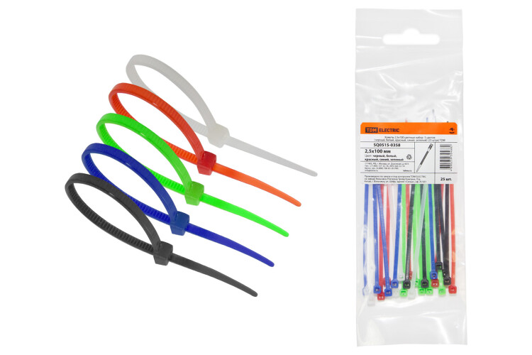 Хомут 2,5х100мм цветные набор 5 цветов 25шт/упак TDM