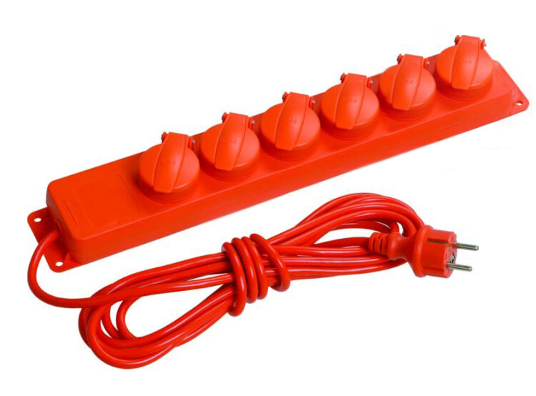Удлинитель 6 гнезд с/з с крышками 5м 16А 250В IP44 (ПВС 3х1мм2) красный У06В IEK