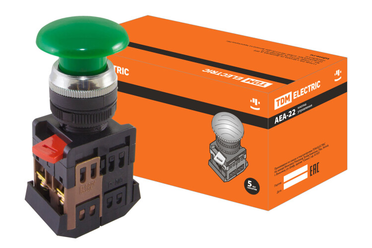 Кнопка AEА-22 "Грибок" зеленый d22мм 1з+1р TDM