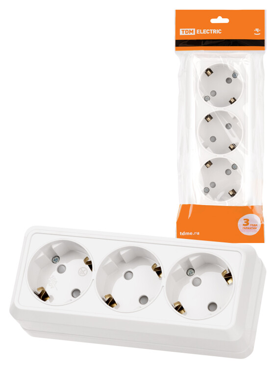 ЛАДОГА Розетка 3-ая с/з с з/ш 16А белый TDM (10/200шт)