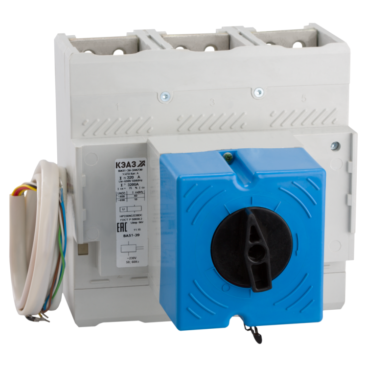 Блочный автоматический 3 полюсный выключатель переменного тока с предельной коммутационной способностью при переменном токе 40 кА на номинальный ток 630 А .