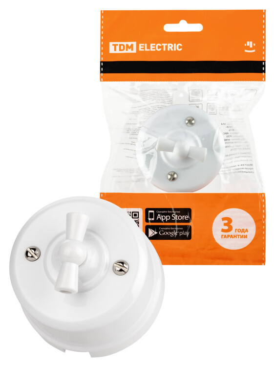 Выключатель поворотный 2-кл. с ручкой (бантик) 10А белый «Виви» TDM