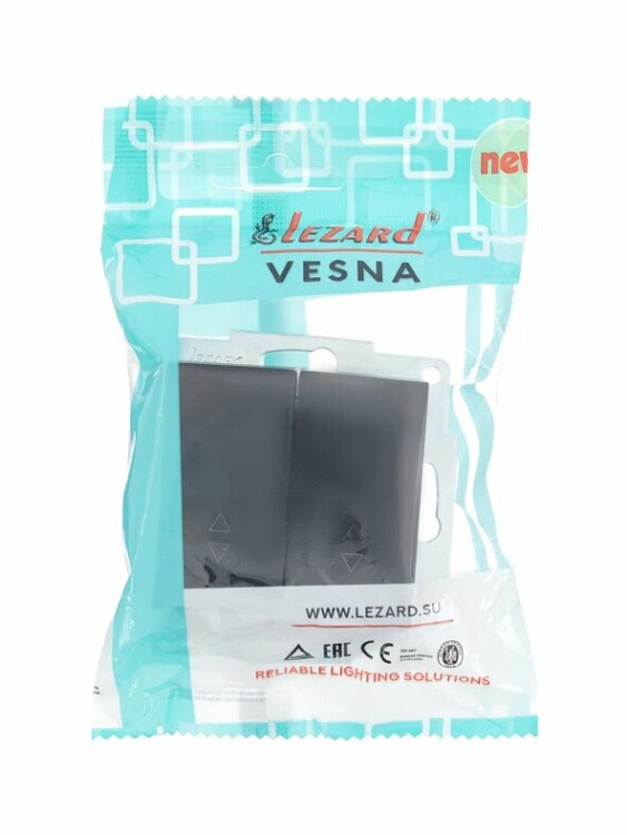 VESNA Выключатель 2-кл. проходной чёрный бархат LEZARD (10шт/120шт)