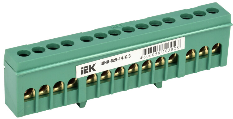 Шина PE "земля" в корп изол на DIN-рейку ШНИ-6х9-14-К-З IEK
