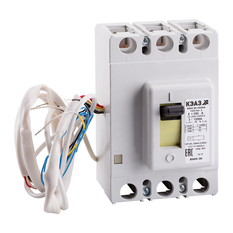 Блочный автоматический 3 полюсный выключатель постоянного тока с предельной коммутационной способностью при постоянном токе кА на номинальный ток 250 А .