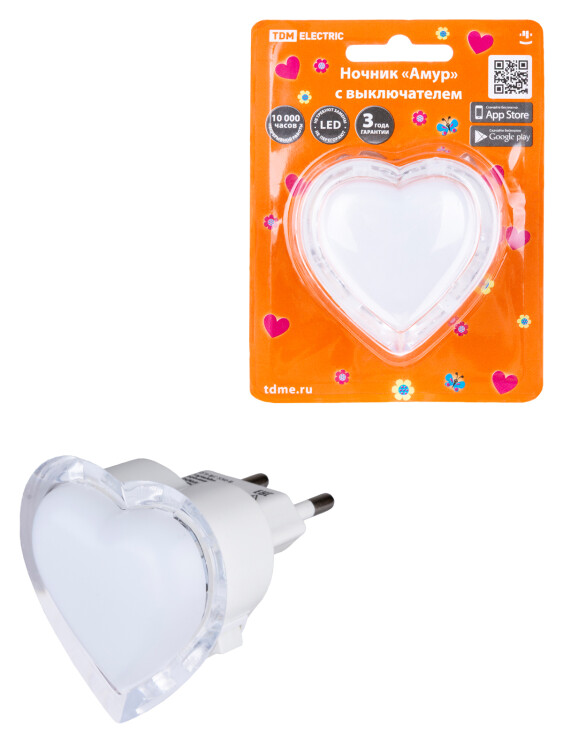 Ночник LED "Амур" с выключателем, 0,3 Вт, 220 В TDM