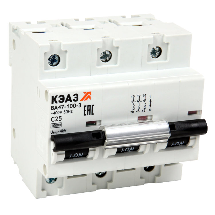 Выключатель автоматический модульный ВА47-100-3C25-УХЛ3 (10кА)-КЭАЗ