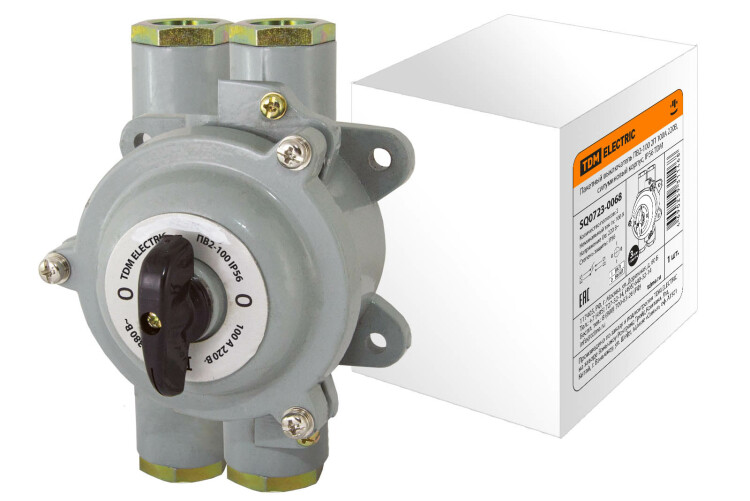 Пакетный выключатель ПВ2-100 2П 100А 220В, силуминовый корпус, IP56 TDM