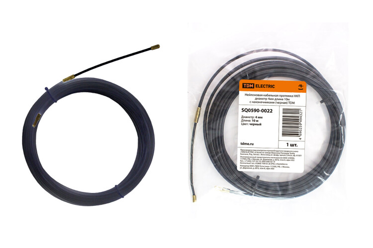 Протяжка оборудована комплектом запрессованных фиксированных наконечников: гибкая пружинная направляющая для проталкивания и заглушка-окно для протягивания кабеля. Индивидуальная упаковка.