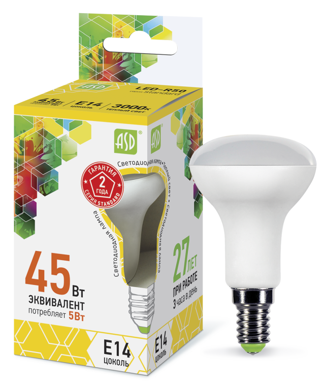 Лампа светодиодная матовая Standard R50 5 Вт 230В 3000K E14 ASD (10/100 шт)