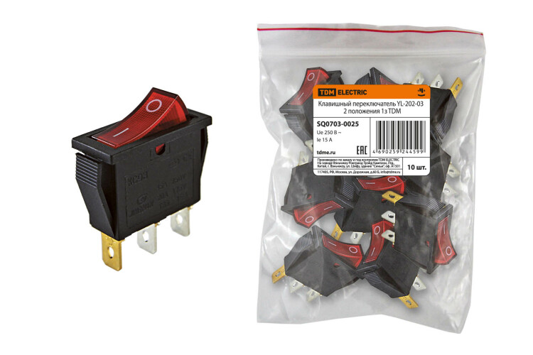 Клавишный переключатель YL-202-03 черный корпус красная клавиша 2 положения 1з TDM