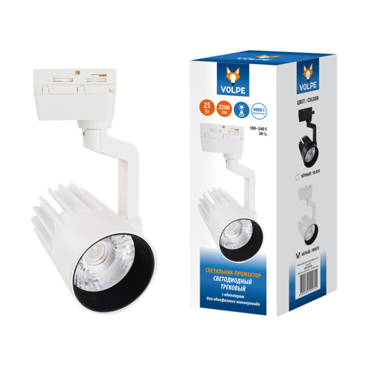 ULB-Q274 25W/4000K WHITE Светильник-прожектор светодиодный трековый. 2200 Лм. Белый свет (4000К). Корпус белый. ТМ Volpe.
