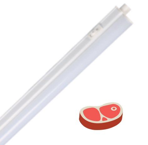FL-LED T4 MEAT - серия светодиодных светильников для мясных прилавков. Светильники представлены в мощностях от 5Вт ло 20Вт и предназначены для подсветки мясных продуктов и птицы, колбасных изделий, мясных полуфабрикатов, деликатесных продуктов в торговых залах, супермаркетах и магазинах. Светодиодные светильники FL-LED T4 MEAT имеют специально подобранный спектр излучения розового цвета, подчеркивающий и усиливающий естественные цвета мяса и мясных продуктов. Светодиодные модули закрыты прозрачным рассеивателем, что позволяет избавиться от слепящего эффекта.