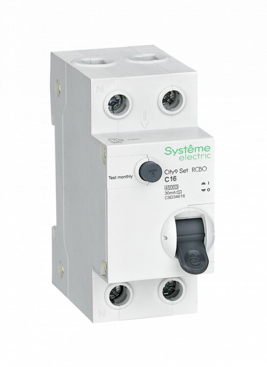 Автоматические выключатели дифференциального тока (АВДТ) серии City9 Set Systeme Electric,1P+N, номинальный ток 16 А, характерис тика С, Icn = 4.5 кА, ток утечки 30 мА, тип АС. АВДТ применяется в электрических сетях напряжением 230В. Предназначен для защиты сети от перегрузок, людей от поражения электрическим током и токов короткого замыкания. Уставка по току утечки 30 мА обеспечивает гарантированную защиту людей при прямом прикосновении. Кнопка тест обеспечивает проверку работоспособности аппарата. Крепление на DIN-рейку шириной 35 мм. Безопасные клеммы.