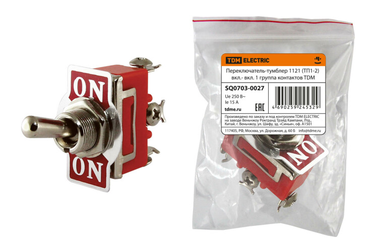 Переключатель-тумблер 1121 (ТП1-2) вкл.- вкл. 1 группа контактов TDM