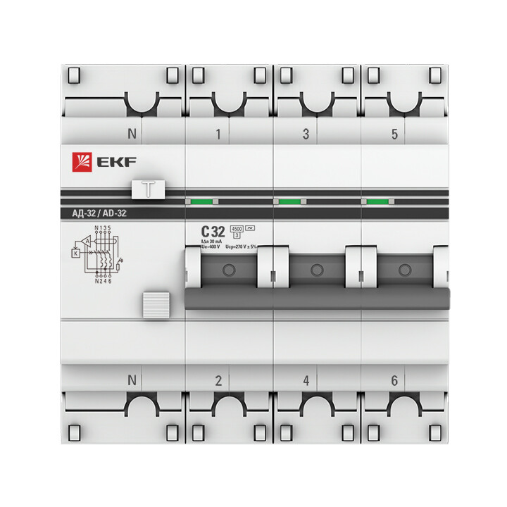 Дифференциальный автоматический выключатель АД-32 EKF PROxima представляет собой аппарат, сочетающий функции автоматического выключателя с устройством защитного отключения. При обнаружении автоматическим выключателем в защищаемом участке сети тока утечки (повреждения) на землю или сверхтока (тока перегрузки или короткого замыкания) происходит срабатывание устройства, приводящее к отключению защищаемой сети. Ассортимент АД-32 дополнен дифавтоматами АД-32 тип А и АД-32 селективными.