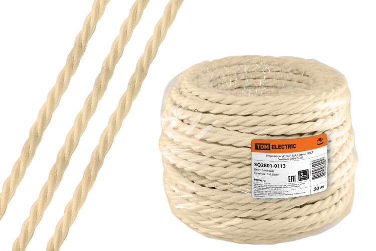 РЕТРО/ЭКО Провод витой 3х1,5 ПВО сосна TDM (50м)