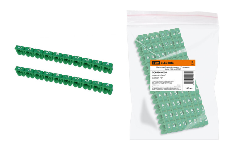 Маркер наборный - символ "5" зеленый 4 мм2 (100 шт.) TDM