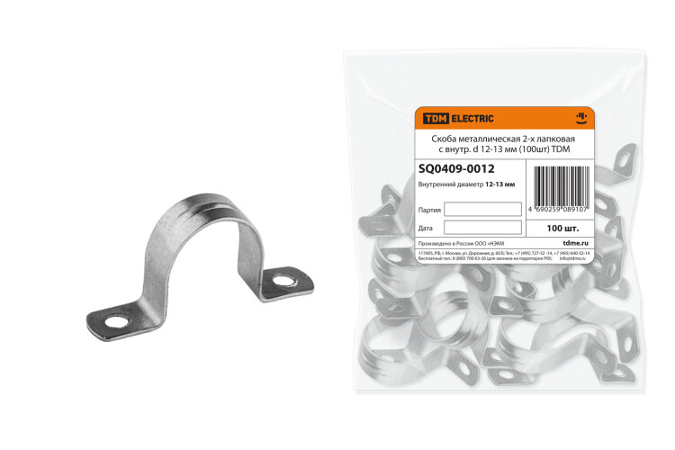 "TDM" Скоба метал. 2-лапк. d12-13мм 100шт/уп